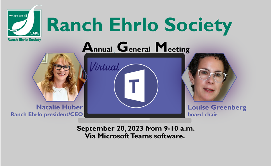 This year’s Ranch Ehrlo Society AGM will once again be held virtually on Wednesday, September 20, 2023, at 9 a.m. using Microsoft Teams software. All staff, board, senate, and members of the agency are invited to attend this virtual event.