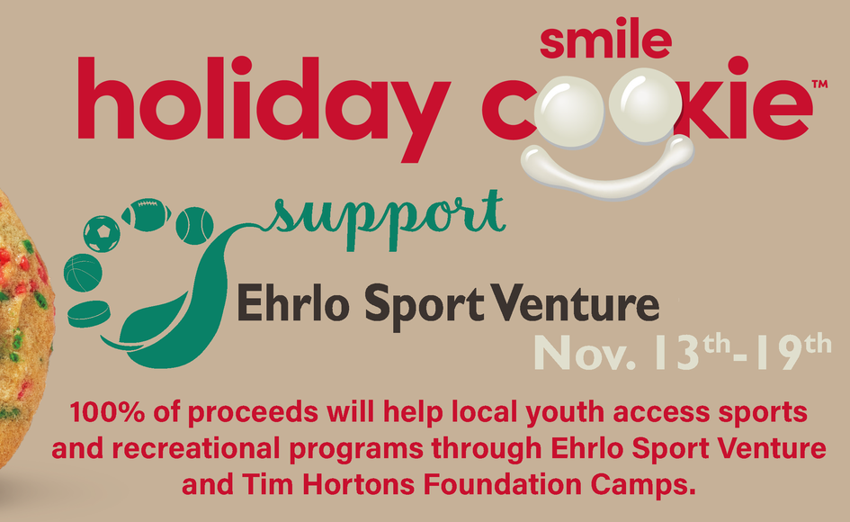 “We continue to be extremely grateful to our local Tim Hortons stores for their partnership and friendship. We hope in this second year, we can sell even more cookies so we can continue to provide opportunities to youth who may otherwise miss out on the benefits of taking part in sports and recreation,” said Gloria Patrick, Ehrlo Sport Venture manager.