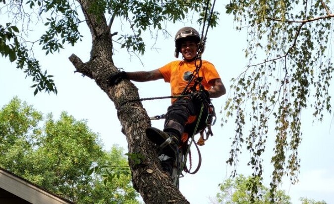 Gabriel is a certified tree faller and certified faller tutor, and he loves his job. He recently came back to the Pilot Butte campus to take care of some of the trees on the property.