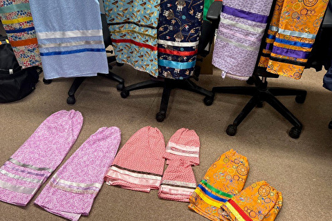 In anticipation of attending a round dance in Regina, a staff member in the Family Centred Addiction Program (FCAP) decided to make traditional ribbon skirts for participants to wear to the event.