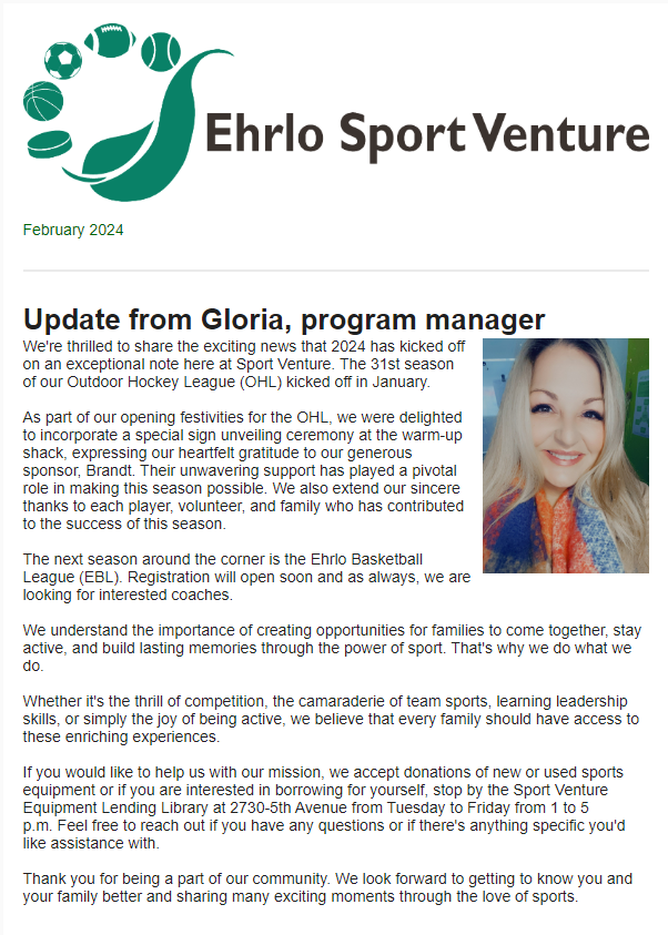 Attention all Ehrlo Sport Venture enthusiasts! The latest edition of our newsletter for February is out now!